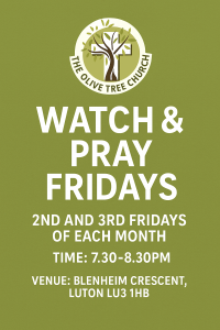 A new venture – please join us in prayer – regular 2nd and 3rd Fridays 7:30 – 8:30 pm and last Friday 6:00 AM to 7:00 AM